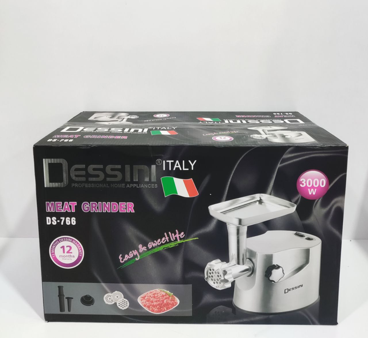 برند دسینی مدل DS-766 نوع چرخ گوشت توان 3000وات دور معکوس بله جنس بدنه استیل ضدزنگ جنس تیغه ها استیل ضدزنگ تعداد پنجره 3عدد سوسیس ساز دارد رنگ استیل