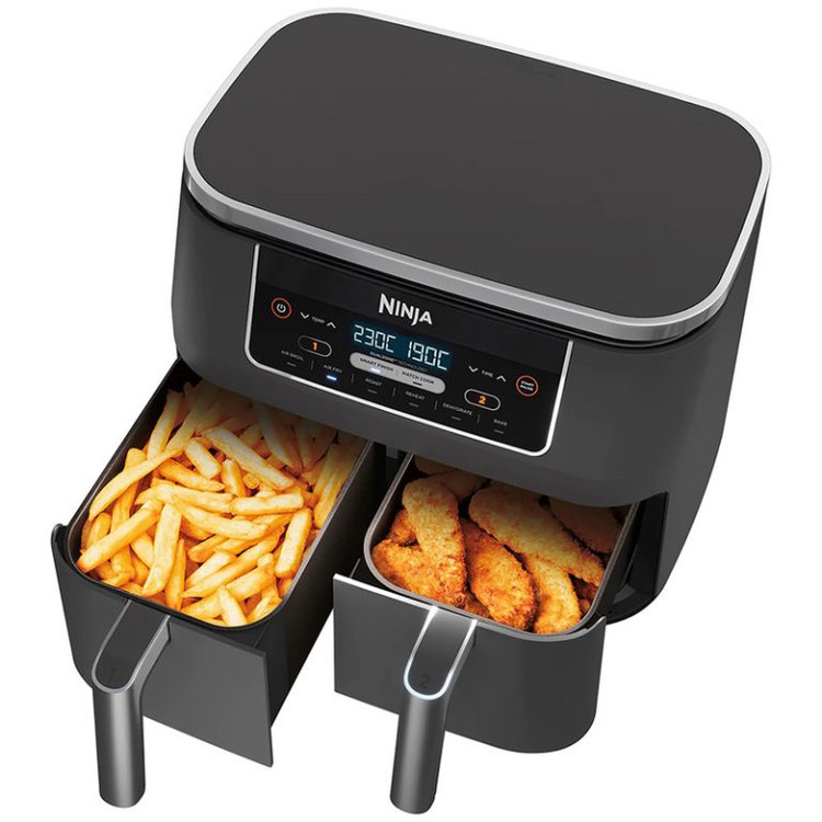 Dual Zone: دو سبد برای پخت جداگانه غذا, پخت 75 درصد سریعتر از فرهای فن دار, عاری از BPA در بخش های پلاستیکی در تماس با مواد غذایی, عملکرد MAX CRISP: پخت سریعتر، برای داشتن غذای گرمتر و تردتر، با استفاده از 2 سبد مجزا, عملکرد همگام سازی برای پایان پخت غذاها با زمان های مختلف پخت, قابلیت شستشوی قطعات در ماشین ظرفشویی, مصرف 75 درصد چربی کمتر