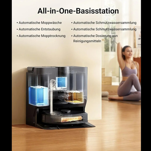 • ایستگاه All-in-One کاملاً خودکار شامل تخلیه زباله، شستشو و خشککردن تی با هوای گرم، پر و تخلیه آب