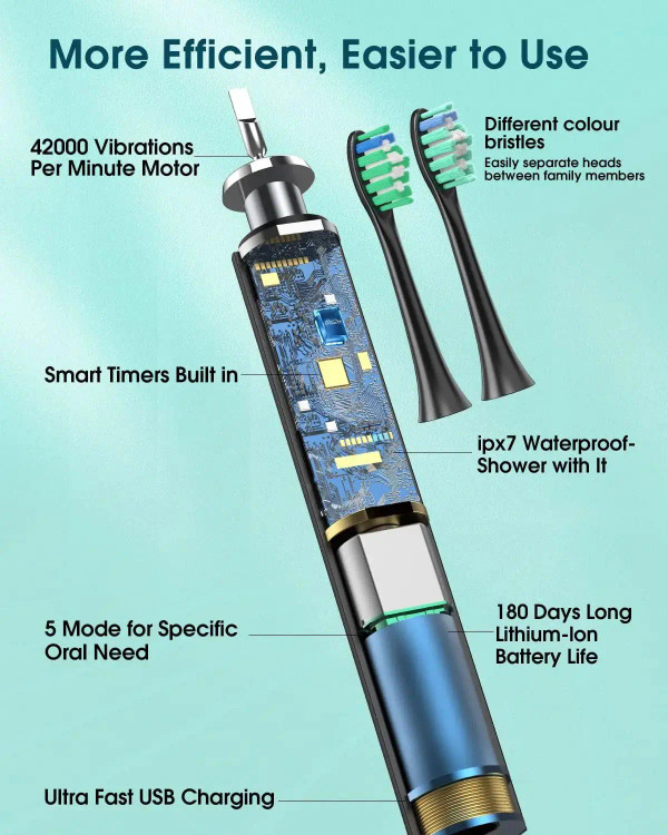 لرزش سونیک قدرتمند تا ۴۰,۰۰۰ و ۴۲,۰۰۰ ارتعاش در دقیقه